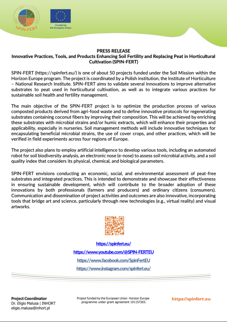 SPIN-FERT: revolutionising soil management and substituting peat for sustainable agriculture soil fertility and peat substitution